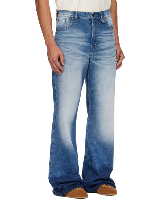 Non-stretch denim jeans. · Fading and whiskering throughout · Wide-leg · Belt loops · Press-stud belt loop · Five-pocket styling · Zip fly · Logo patch at back waistband Supplier color: Blue