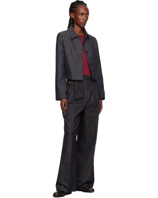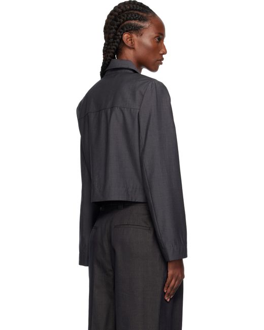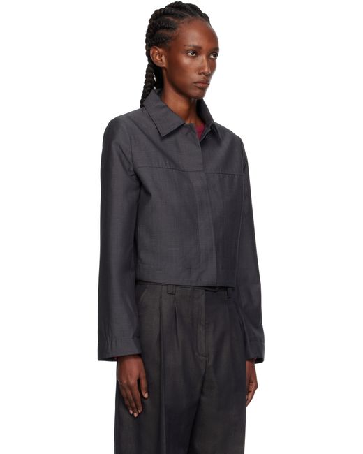 Deadstock wool delaine jacket. · Check pattern throughout · Spread collar · Button closure · Seam pockets · Cropped hem · Full satin lining Supplier color: Grey micro check