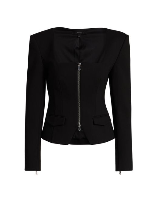 This Koda top from Toccin is crafted of Ponte fabric and features a square neck and non-functional flap pockets. Square neck Long sleeves Front zip closure 67% rayon/28% nylon/5% spandex Hand Wash Imported SIZE & FIT About 23" from shoulder to hem Model measurements: 5'10" tall Model is wearing a US size 4. Modern Collections - Branded Separates > Toccin > Saks Fifth Avenue. Toccin. Color: Jet. Size: 0.