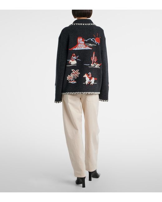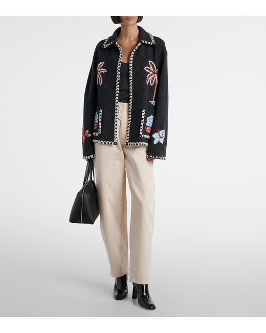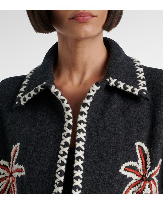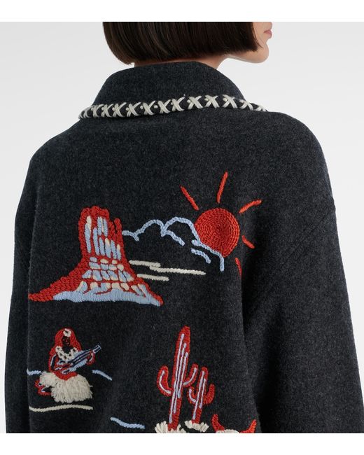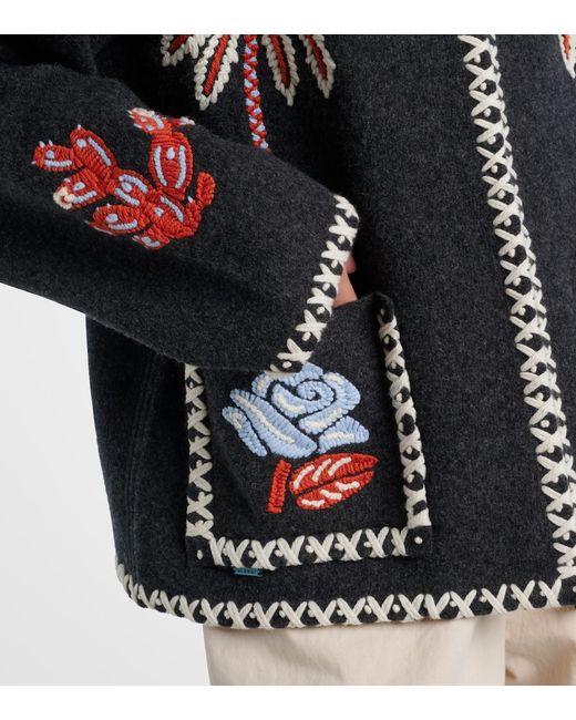 Material: 100% virgin wool. Care instructions: dry clean. Made in Italy. Designer color name: Charcoal/Multicolor. Item color: gray, multicolor. Embroidery: 100% wool. Wool. Pockets: patch pockets. Closure: open front. Includes: dust bag.
