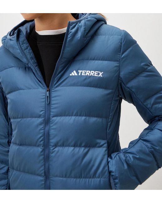 The Adidas Terrex Multi Light Down Hooded Blue Women's Jacket in size M & L is a stylish and practical choice for outdoor activities or casual wear. Made from durable polyester with a softshell fabric type, this mid-length jacket features a quilted design with 80% duck down and 20% feather insulation, keeping you warm and comfortable. The full zip closure, hood, and zipped pockets add functionality to this lightweight and breathable jacket, perfect for travel or everyday use. Machine washable for easy care, this jacket is a versatile addition to any woman's wardrobe.