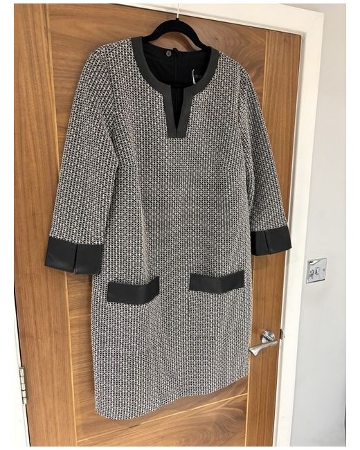 Madeleine Size 16 UK New with tags Still selling for £209 on their website Bought for an event and never wore Faux leather piping on the round neckline and the pockets and sleeve cuffs also stand out with an elegant contrast. The 3/4-length cuff sleeves look cool and elegant at the same time. Length approx. 98 cm, just skims the knees No returns accepted