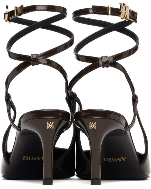 Patent leather heels. · Pointed toe · Wraparound pin-buckle ankle strap with logo hardware · Logo hardware at heel · Stiletto heel with rubber injection · Leather sole · Heel: H3 Supplier color: Chocolate