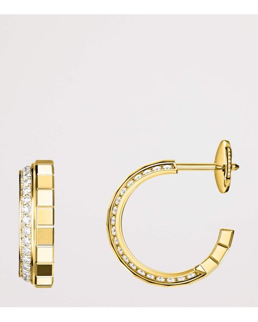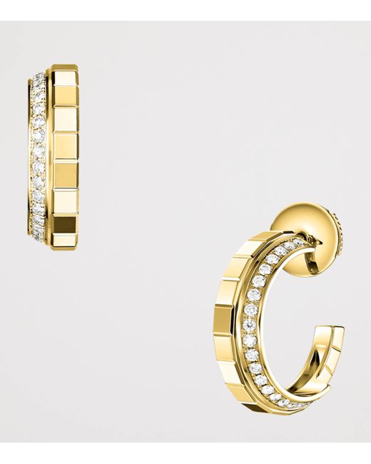 Debuted in 1999, Chopard's Ice Cube collection has always felt innately modern - a result of its sharp, squared aesthetic, inspired by tiny blocks of ice. With abundant facets and perfect geometry, these yellow gold and diamond hoop earrings catch the light in the same way that sunlight reflects off frozen water, translating this natural moment into one which plays out endlessly as part of your jewellery rotation.