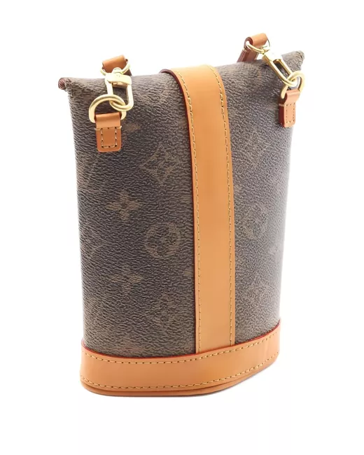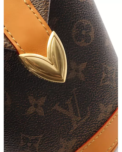 brown monogram pattern leather trim detachable shoulder strap gold-tone hardware main compartment