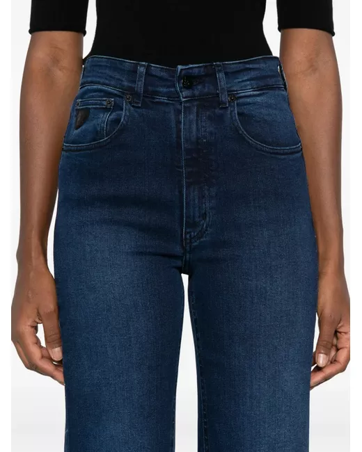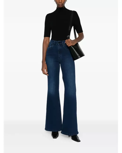 black high waist flared leg classic five pockets front button and zip fastening belt loops