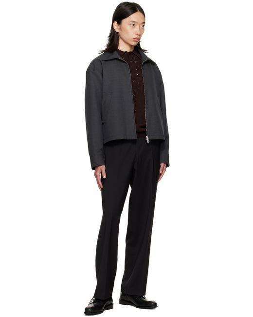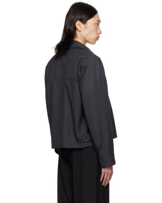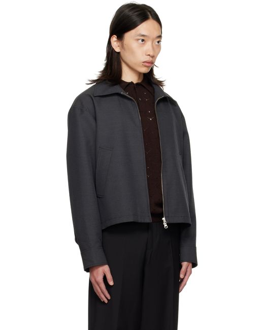 Plain-woven wool jacket. · Spread collar · Two-way zip closure · Welt pockets at waist · Buttoned barrel cuffs · Adjustable buttoned tabs at back hem · Patch pocket at interior · Partial satin twill lining Supplier color: Dark grey wool