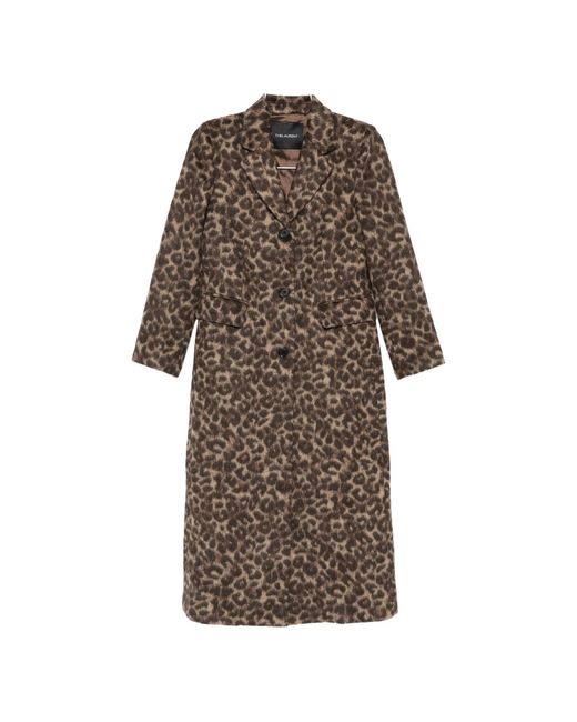brown leopard print button fastening flap pockets long sleeves notched lapels