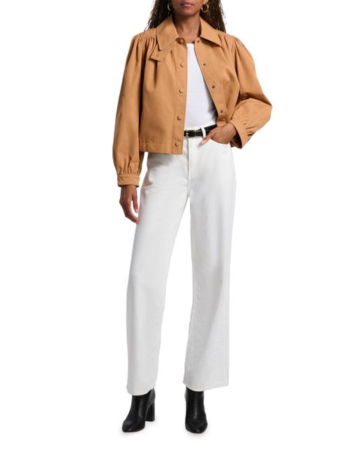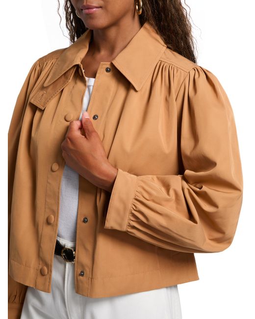 Ba & sh's Icon jacket flaunts a short silhouette with back yoke gathers for volume. Crafted of a cotton blend, this piece is complete with a spread collar. Spread collar Long sleeves Side slip pockets Front snap closure 64% polyester/36% cotton Machine wash Imported SIZE & FIT About 48" from shoulder to hem Model measurements: 5'10" tall Model is wearing US size 4. Contemporary Sportswear - Contemporary Lifestyle > Ba & sh > Saks Fifth Avenue. ba & sh. Color: Camel. Size: Small.