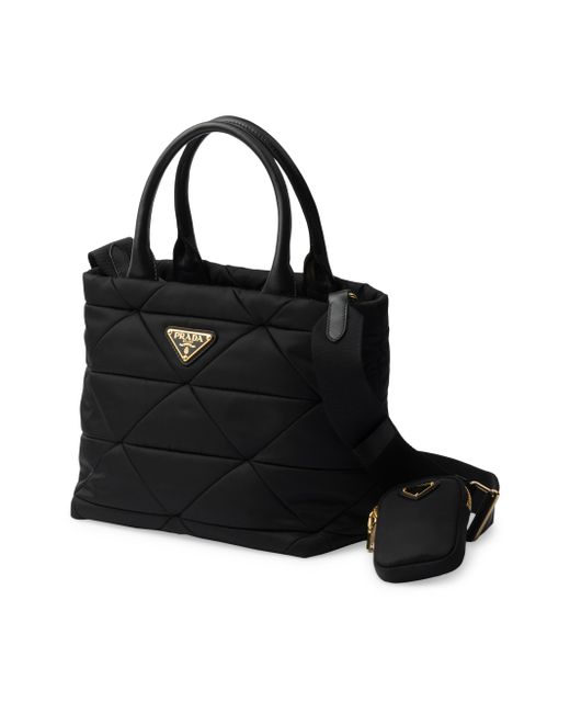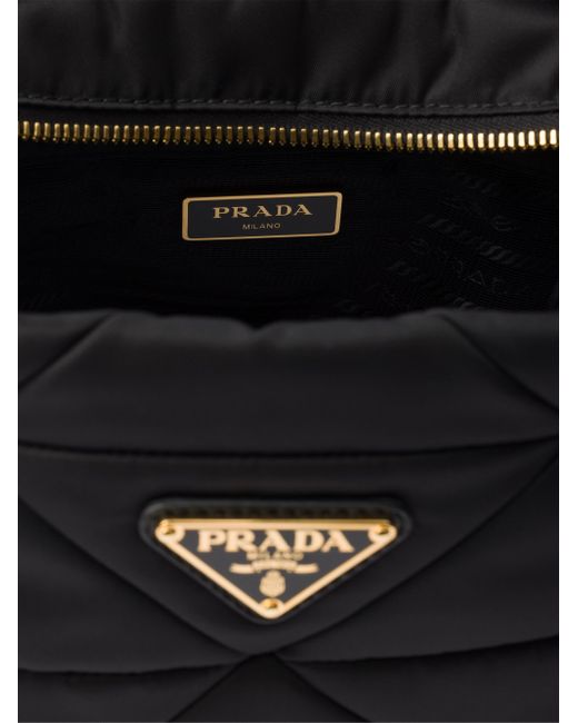 Triangle-stitched padding Nappa leather handles Detachable, adjustable woven logo tape shoulder strap Removable Re-Nylon pouch with zipper closure Back zipper pocket Metal hardware Enameled metal triangle logo on the front Zipper closure Logo-print Re-Nylon lining with two pockets, including one with zipper Imported 100% Recycled Polyamide 9.4'' W x 8.2'' H x 5.1'' L. Lsd Handbags - Prada Handbags Access > Prada > Saks Fifth Avenue. Prada. Color: Black Gold.