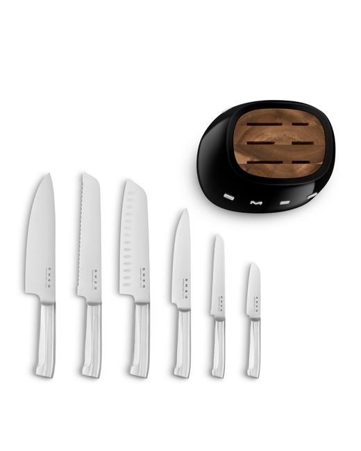 As expected from Smeg, this knife block set also features the brand's signature retro aesthetic. While the exterior might look similar to the classic kettle, its details are rendered from acacia wood to protect the stainless steel knives that accompany it. Each of the six knives included was designed to maximise performance while keeping safety in mind, with ergonomic handles offering a comfortable and secure grip.