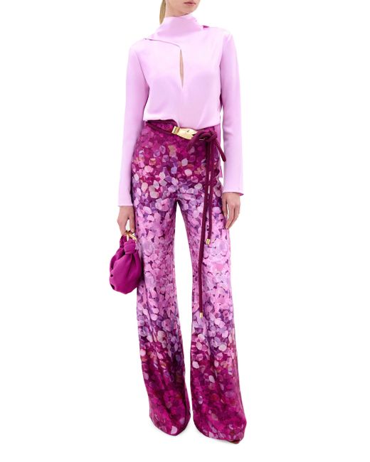 Crafted of crêpe satin, Silvia Tcherassi's Como straight-leg pants elevate the sleek silhouette with a clean waist and ombrê geometric print. Clean waistband Concealed back zip closure 100% viscose Lining: 100% polyester Dry clean Imported SIZE & FIT Model measurements: 5'10" tall Model is wearing a US size Small. Designer Lifestyle - Silvia Tcherassi > Silvia Tcherassi > Saks Fifth Avenue. Silvia Tcherassi. Color: Magenta Abstract. Size: XS.