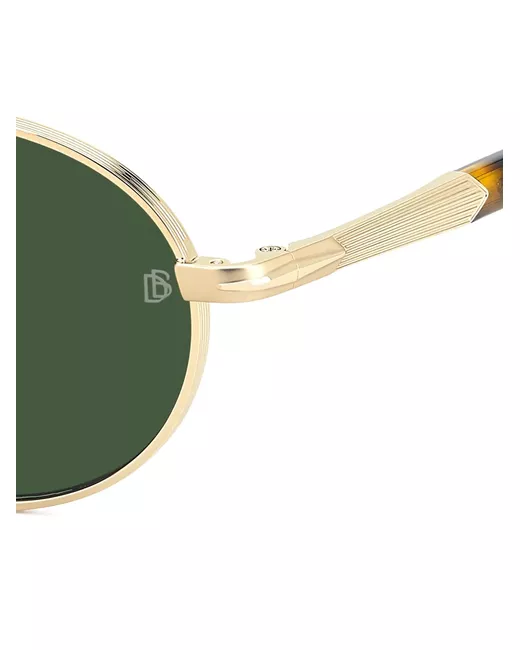 gold round frame green lenses metal arms tortoiseshell temple tips These glasses come with a protective case.