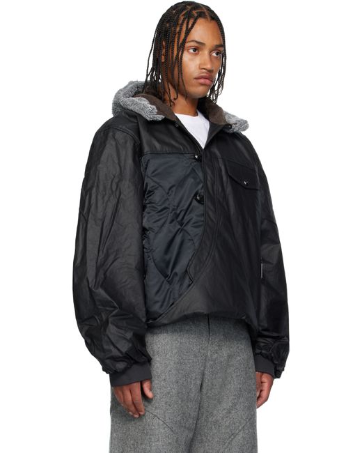 Quilted coated cotton canvas and satin jacket. · Paneled construction · Faux-fur trim at hood · Offset toggle fastening · Flap pocket at chest · Zip pocket at waist · Dropped shoulders · Rib-knit cuffs · Ruching at sleeves and back · Full quilted satin lining Supplier color: Euphoric black