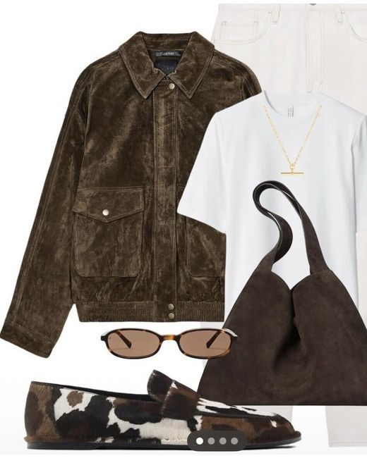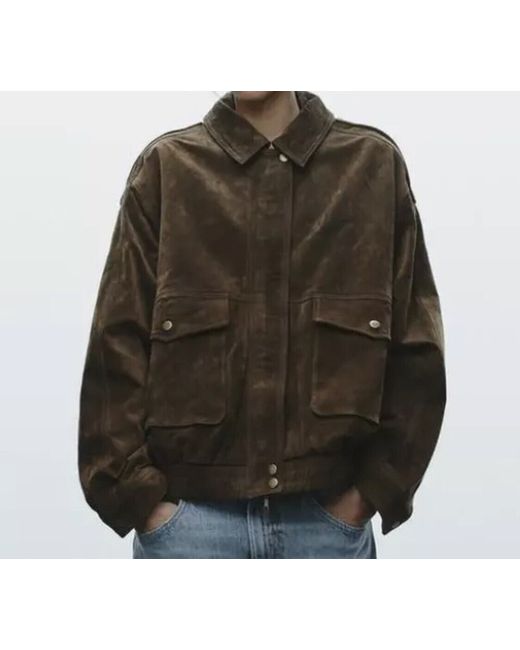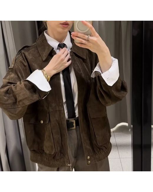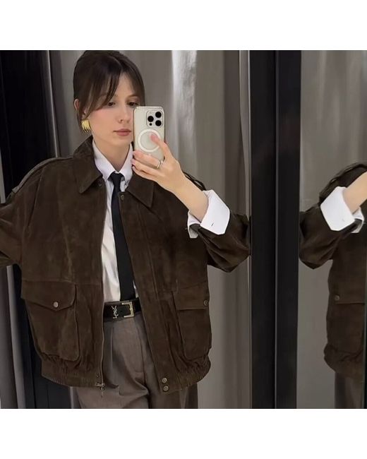 Brown Bnwt Suede Leather Bomber Jacket With Pockets S