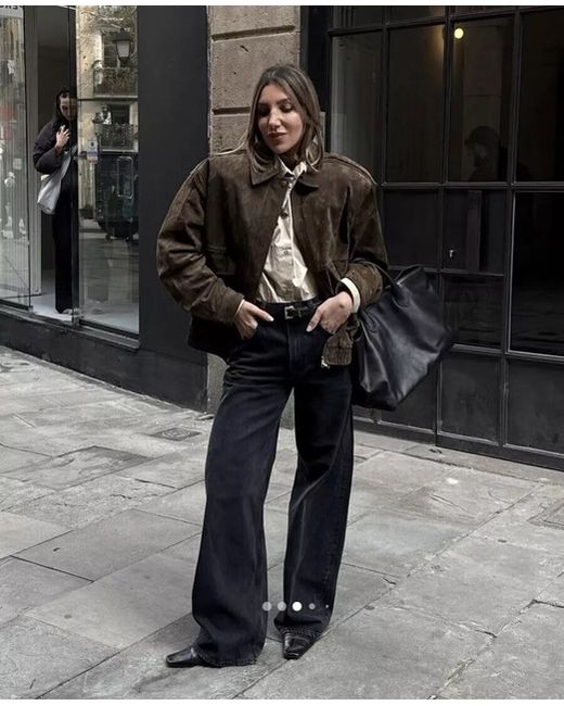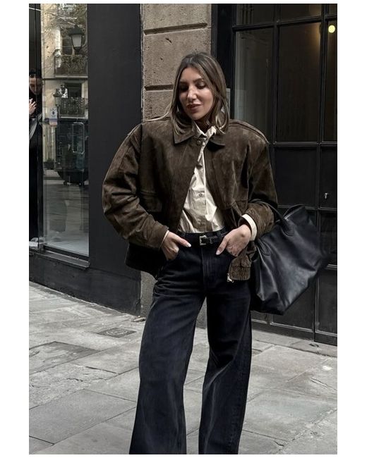 Leather Suede Bomber Jacket With Pockets Dark L 3046/258/724
