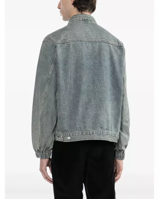 light blue concealed front zip fastening zip-fastening chest pocket two front jetted pockets elasticated cuffs