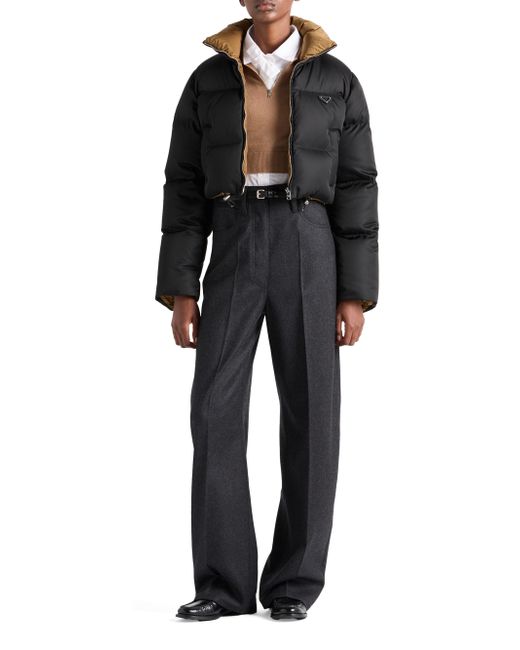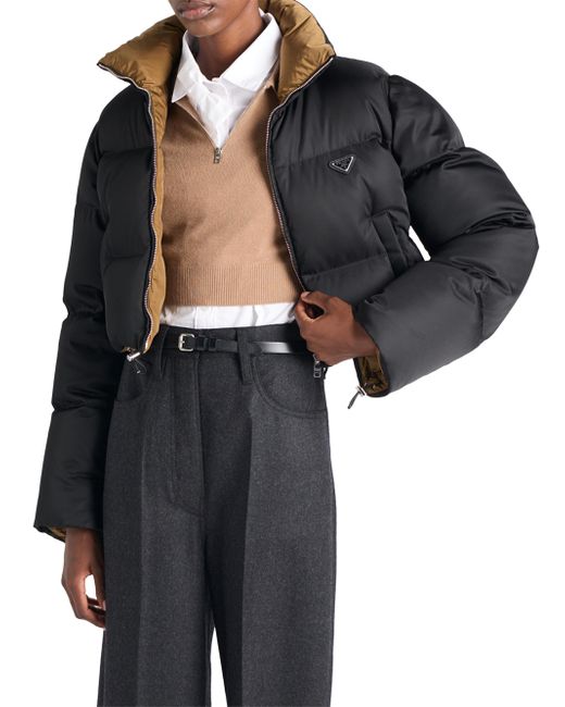 Regular fit Goose down padding Stand-up collar Long sleeves with elasticized cuff Zipper closure Welt zipper pockets Elasticized drawstring hem Enameled metal triangle logo Lightweight Re-Nylon lining Internal zipper pocket Imported 100% Recycled Polyamide. Lsd Rtw - Prada Rtw > Prada > Saks Fifth Avenue. Prada. Color: Black. Size: 38.