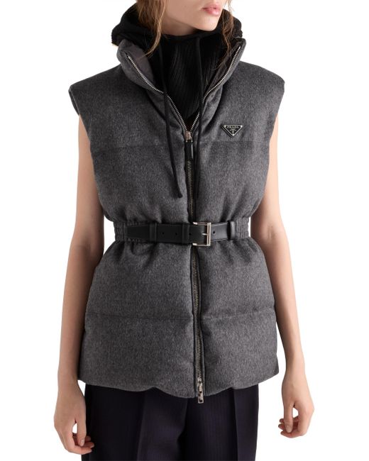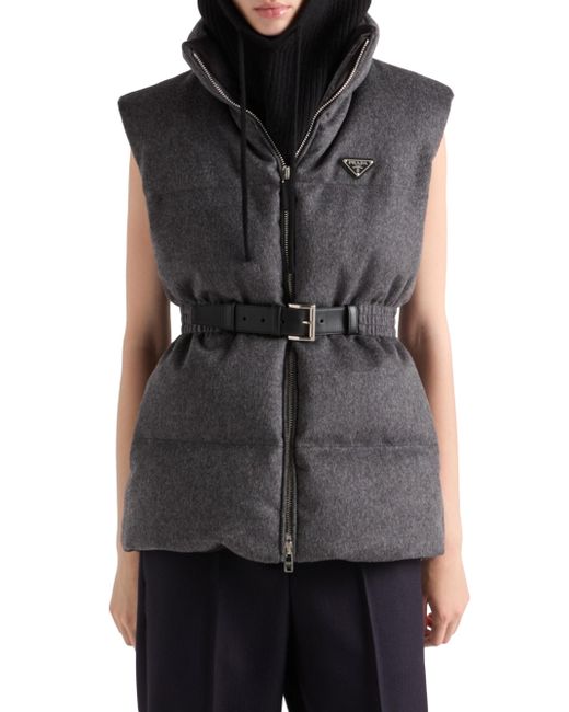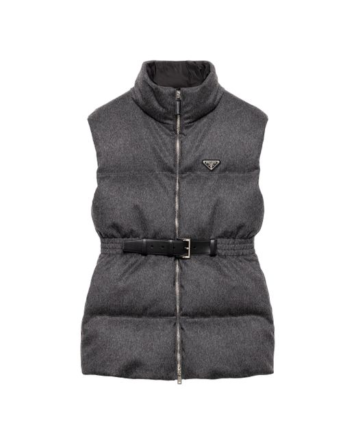 Relaxed fit - The garment fits up to one size larger Goose down padding Stand-up collar Zipper closure Fabric triangle logo Internal pocket with button Leather belt Lined garment Elasticized waist Inseam pockets Imported 100% Fleece Wool - 100% Calf Leather. Lsd Rtw - Prada Rtw > Prada > Saks Fifth Avenue. Prada. Color: Grey. Size: 2.