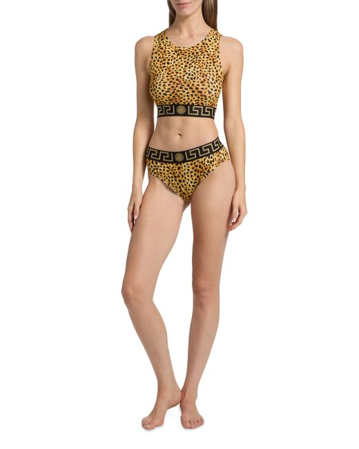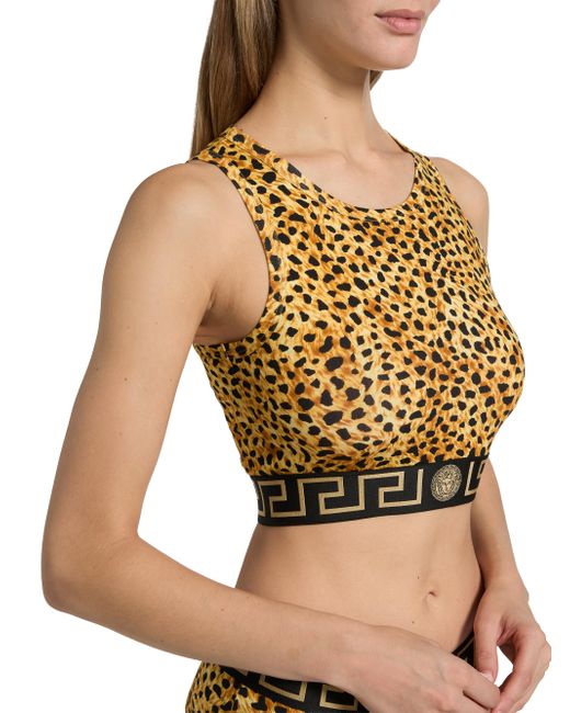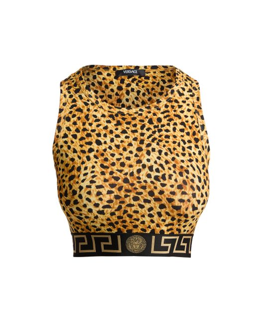 Versace's stretch top flaunts a cheetah print and iconic Greek key and Medusa head details at the underbust band. This piece pairs soft jersey comfort with sleek, alluring lines and a round neckline. Round neck Sleeveless Pulls over 94% cotton/6% elastane Trim: 82% polyester/9% nylon/9% elastane Machine wash Imported SIZE & FIT Model measurements: 5'10" tall Model is wearing a US size 4 ABOUT THE BRAND Founded in 1978, Versace is instantly recognizable by the signature Medusa head logo, chosen by founder Gianni Versace for its Greek symbolism. The Italian label is known for its luxe, bold clothing and accessories-think gilding, oversized logos and punchy prints. Since taking over artistic direction, Gianni's sister Donatella Versace has maintained the brand's strong identity, with a renewed vision to give customers the ultimate freedom to express themselves. Lingerie - Designer Foundations > Versace > Saks Fifth Avenue. Versace. Color: Neutral. Size: XS.