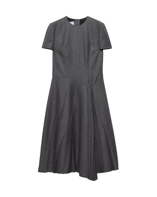 Flared fit Lined Round neck Back zipper and button closure Short sleeves Inseam pockets Asymmetrical hem Imported 100% Fleece Wool. Lsd Rtw - Prada Rtw > Prada > Saks Fifth Avenue. Prada. Color: Grey. Size: 8.