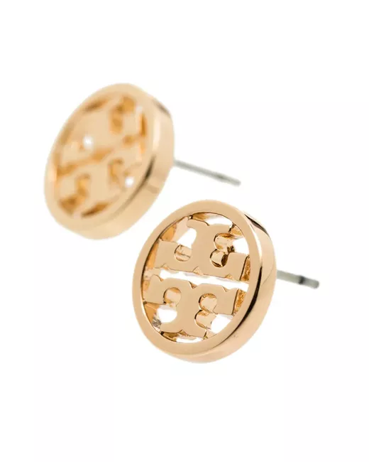 gold-tone brass stud design logo plaque post-back fastening for pierced ears These earrings come as a pair.