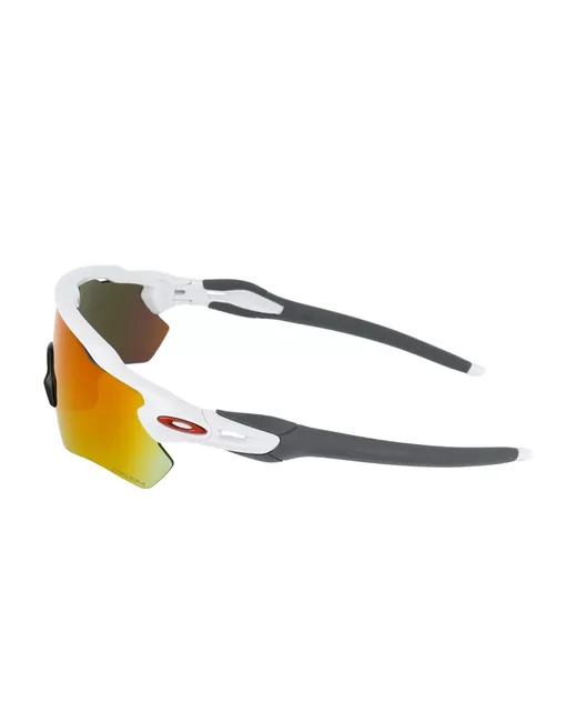 white geometric frame red mirrored lenses acetate material curved arms nose pads These glasses come with a protective case.