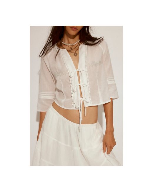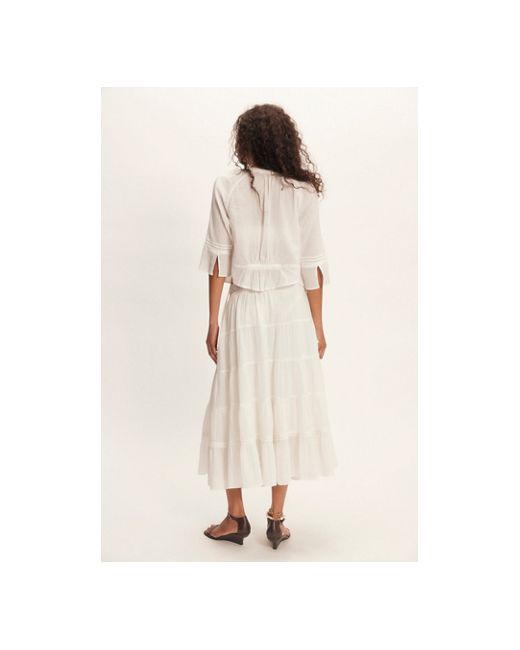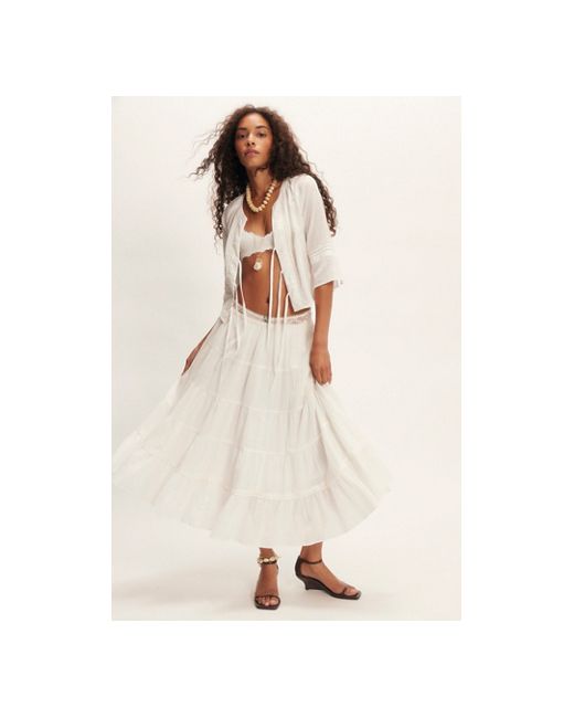 The most versatile, vintage-inspired set featured in a flowy, relaxed fit with subtle embroidery for the perfect finishing touch. **Top:** * Ties at front * 3/4 length sleeves * Cropped silhouette **Skirt:** * High-rise style * Tiered design * Elasticated waistband Bright Side Set at Free People in Tofu, Size: XS