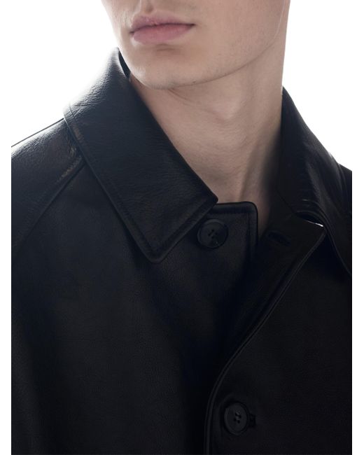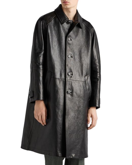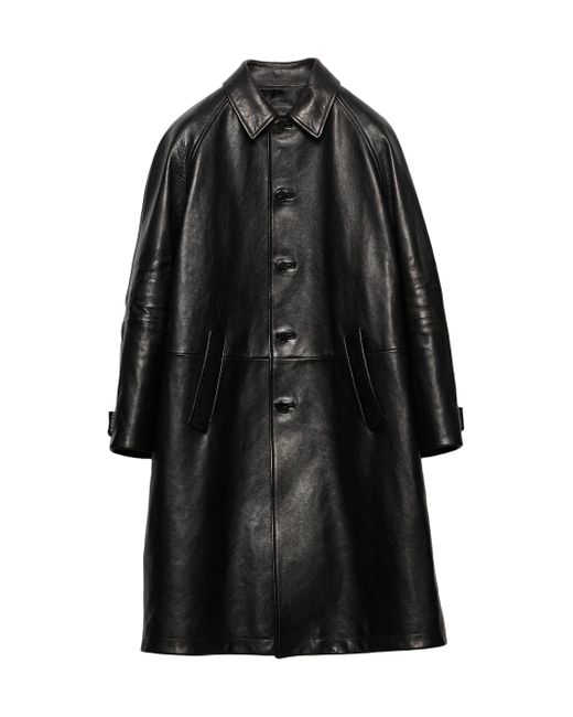 Lined garment Oversized fit Center button closure Shirt-style collar Straight sleeve, cuff with strap and button Wide welt pockets Leather triangle logo on the back Final waxing treatment Imported 100% Buffalo leather. Lsd Rtw - Prada Rtw > Prada > Saks Fifth Avenue. Prada. Color: Black. Size: 38.