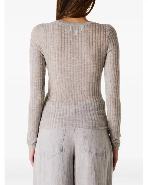 grey ribbed knit long sleeves round neck