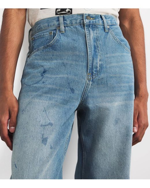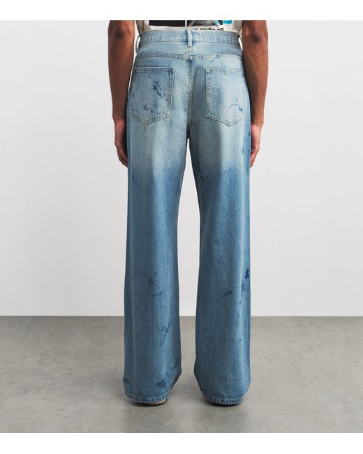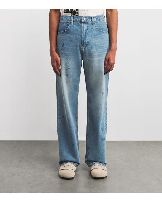 These domrebel light-wash bootcut jeans carry a weathered, lived-in look with artfully placed scuff marks, reflecting the brand's ethos of edgy, wearable rebellion. Each pair embodies the Montreal-born label's dedication to turning everyday staples into statements of individuality and attitude.
