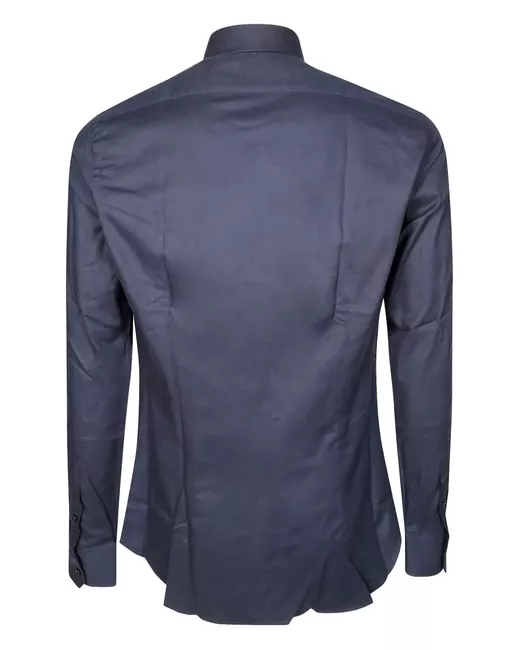 dark blue button fastening long sleeves buttoned cuffs point collar