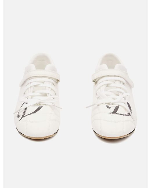 DEINETD Logo Lace Up Mozzi Shoes In WhiteVelcro fastener closureReversed lace-up closureCotton upperContrasting D-logo printed on sideTopstitchingCushioned collarFlat outsoleColor: White