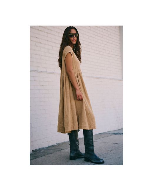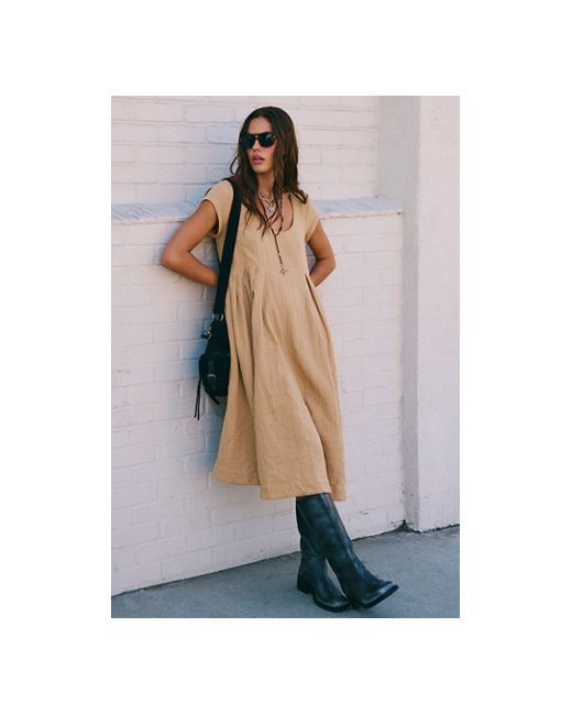 There's nothing more effortless than slipping into this midi from free-est, featured in a flowy short-sleeve style with intentional pleating for a stunning, billowing shape. **Fit:** Billowy, breezy, midi length **Features:** Lightweight cotton fabrication, scoop neckline, cap sleeves, pleated details, keyhole accent at back, side pockets **Why We ❤ It:** Comfy *and* it has pockets-what more could you want! Blaine Midi by free-est at Free People in Iced Coffee, Size: XS