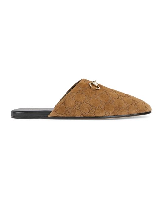 Crafted of suede, these Lucy mule loafers showcase Gucci's signature horsebit hardware on a logo ground. Almond toe Slips on Suede upper Leather sole Made in Italy ABOUT THE BRAND First launched in 1921, the Italian luxury fashion house quickly became known for its fine leather craftsmanship and accessories. Today, the visionary brand continues to redefine fashion trends, while celebrating creativity and innovation. Gucci's contemporary designs include shoes, clothing and accessories-often boasting the distinctive Horsebit motif. Men's Shoes - Gucci Shoes > Gucci > Saks Fifth Avenue. Gucci. Color: Pepper Brown. Size: 9.
