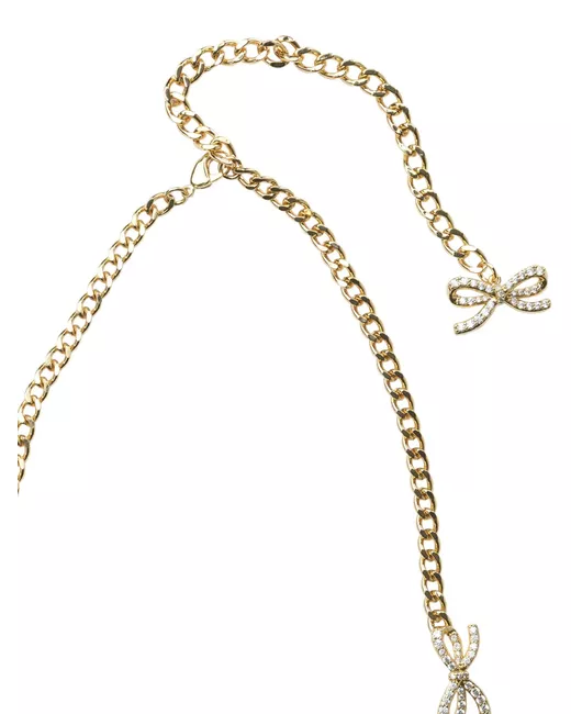 gold-tone bow charms crystal embellishments adjustable length lobster-clasp fastening