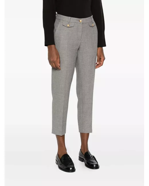 grey herringbone pattern gold-tone buttons side pockets straight leg cropped