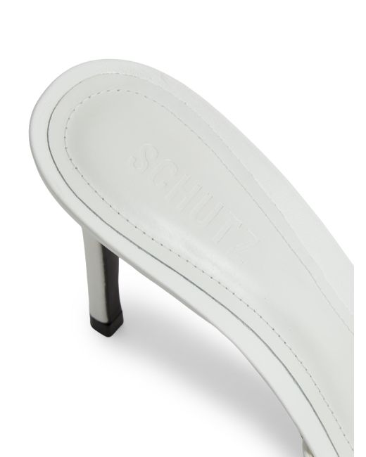 Schutz's Cloe sandals feature a slip-on design and are crafted of shiny patent leather. The stiletto-covered heels add a sleek touch to this stylish pair. Open toe Slip on style Leather upper Leather lining Leather sole Imported SIZE Heel: about 4" (100 mm). Women's Shoes - Contemporary Shoes > Schutz > Saks Fifth Avenue. Schutz. Color: Ivory. Size: 5.