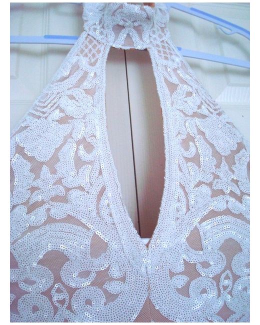 HALTERNECK & FLARED LEG. Flared legs 12.5" across hem. FORMAL WEDDING. S ize M (approx 12). I do not have a mannequin so I used coat hangers to try to show off the style. Fully Lined in natural beige stretch fabric.