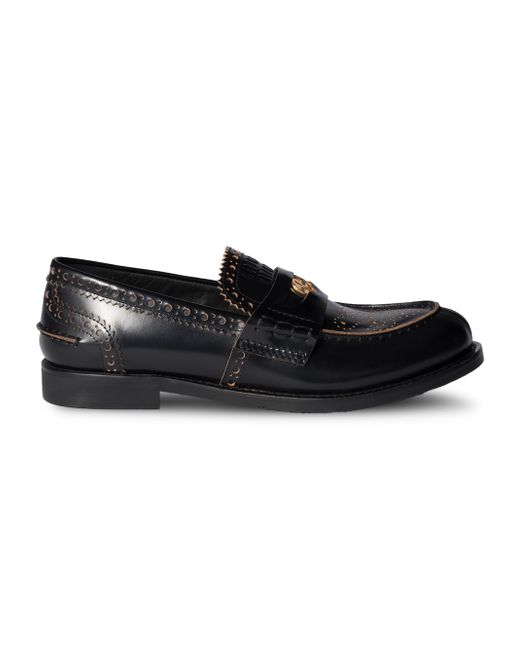 Upper with perforations Apron with leather band and logo-engraved coin Rubber sole Heel height: 20 mm / 0.78'' Leather insole Logo embossed on the tone and screen-printed on the insole Imported 100% Calf Leather. Lsd Handbags - Miu Miu > Miu Miu > Saks Fifth Avenue. Miu Miu. Color: Black. Size: 7.