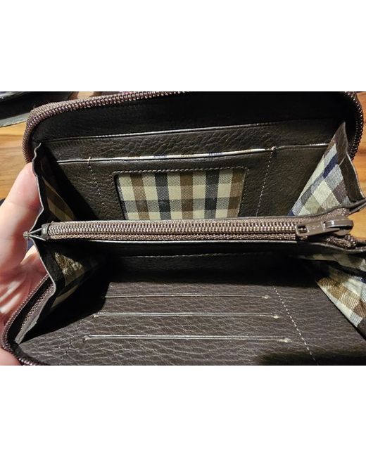 New, without tags, a lovely brown leather purse. With zip fastening, this comes in the original box and protective cover bag.
