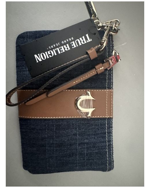 The True Religion Buddha Patch Denim Wristlet is a stylish and practical accessory for women, perfect for carrying essentials while on the go. Made from high-quality cotton denim in a classic blue colour, this wristlet features a unique Buddha patch design that adds a touch of personality to any outfit. With a convenient pouch wallet design, this True Religion wristlet combines fashion and functionality for a chic look.