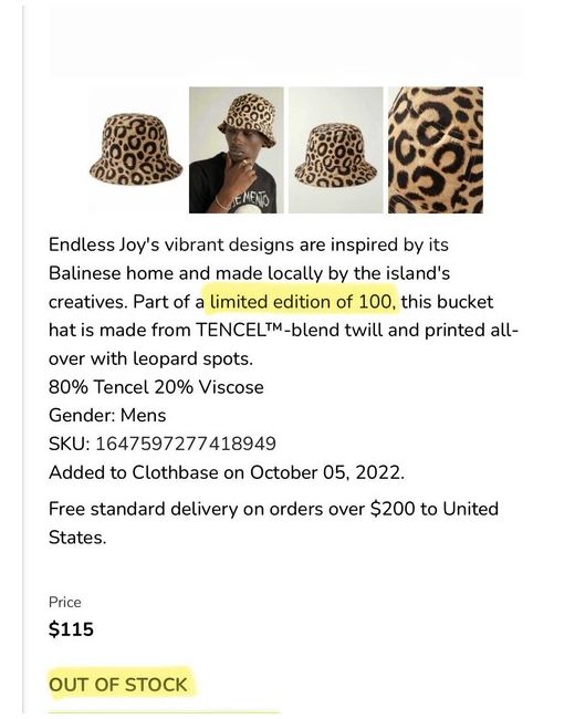 This is a unique opportunity to own a very rare hat. Number 6 out of 100 made Worldwide with handwritten number . Made by Endless Joy.