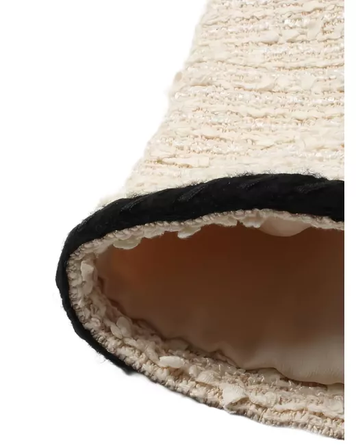 circa 2010s light beige tweed interlocking G buttons short sleeves black trim V-neck