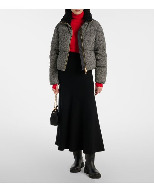 Material: 60% wool, 20% lyocell, 20% polyamide. Care instructions: dry clean. Made in Romania. Designer color name: F90. Item color: white, black. Lining: 100% polyamide. Lining II: 100% polyester. Filling: 90% down, 10% feathers. Details: 100% calf leather. Contains non-textile parts of animal origin. Hardware color: gold. Closure: two-way zipped front. Pockets: zipped pockets. Cuff: elasticated. Hem: elasticated. Wool.