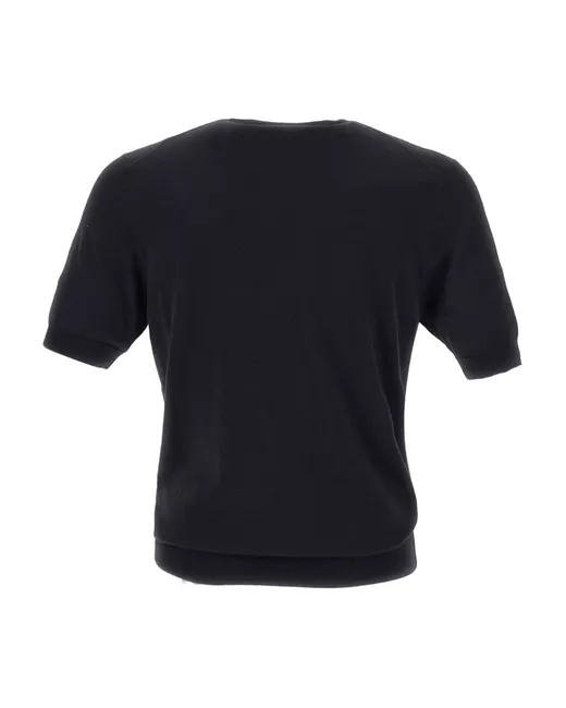 navy blue cotton short sleeves ribbed cuffs and hem