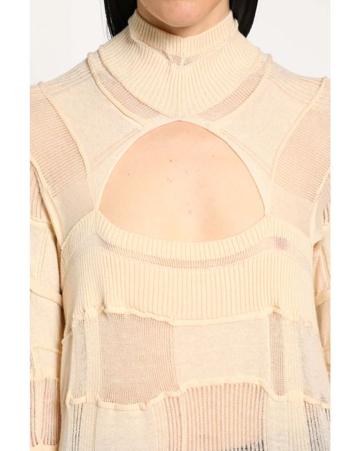 creamlightweight sheer cotton cashmere chequered knitturtleneckfront and back cut-outsdropped shoulderselongated hemslim fit
