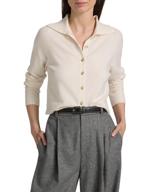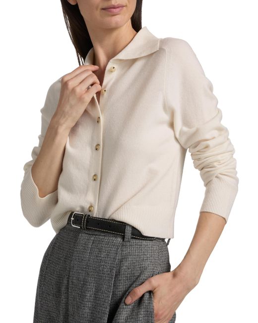 Knit from a wool and cashmere blend, this cozy polo cardigan from Vince is designed with a spread collar, long sleeves, and rib-knit trim. Spread collar Long sleeves Rib-knit trim Button-front closure 54% wool/35% cashmere/11% polyester Hand wash Imported SIZE & FIT About 20.5" from shoulder to hem Model measurements: 5'10" tall Model is wearing a US size Small. Contemporary Sportswear - Vince > Vince > Saks Fifth Avenue. Vince. Color: Off White. Size: Large.