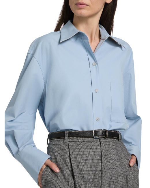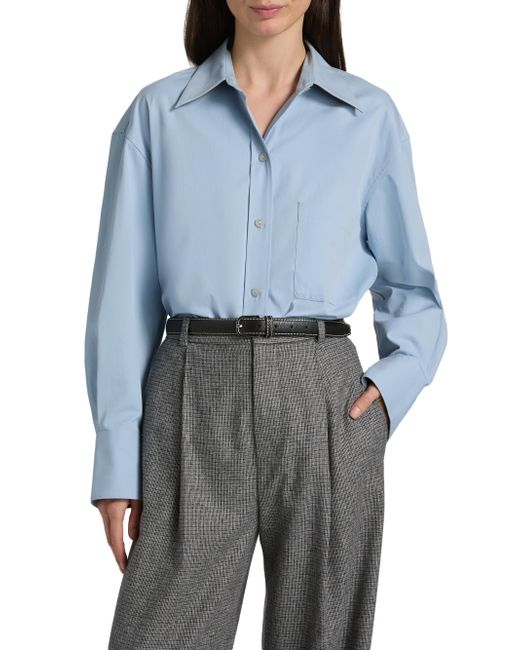 Crafted of Italian cotton, this oversized shirt from Vince is detailed with faux-leather trim. Spread collar Long sleeves, button cuffs Chest patch pocket Shirttail hem Button-front closure 100% cotton Trim: 100% polyester Hand wash Imported of Italian fabric SIZE & FIT About 29" from shoulder to hem Model measurements: 5'10" tall Model is wearing a US size Small. Contemporary Sportswear - Vince > Vince > Saks Fifth Avenue. Vince. Color: Amalfi. Size: Large.