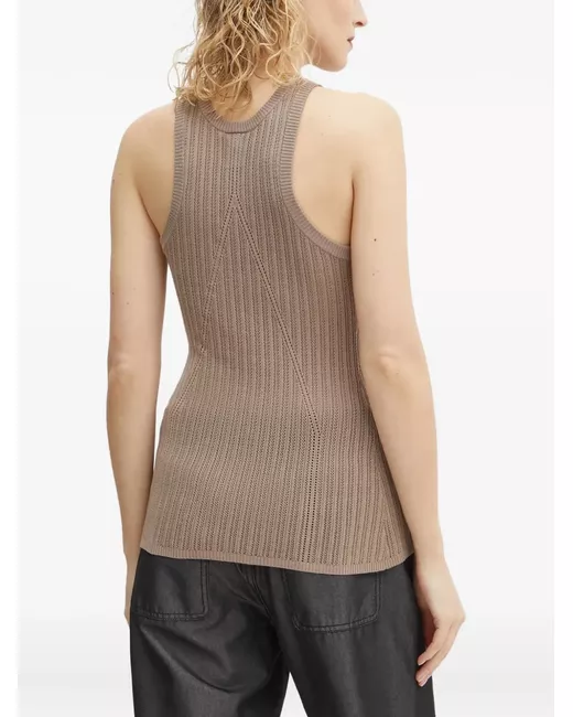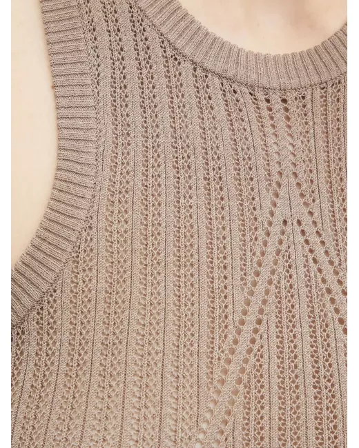 taupe ribbed knit open knit round neck sleeveless straight hem